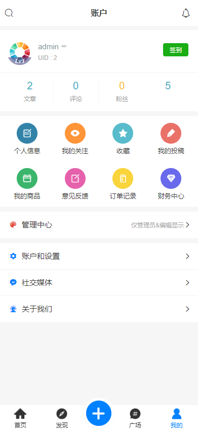 8.拥有管理员界面,实现了权限分级,只需要在APP内就可以管理整个站点。
