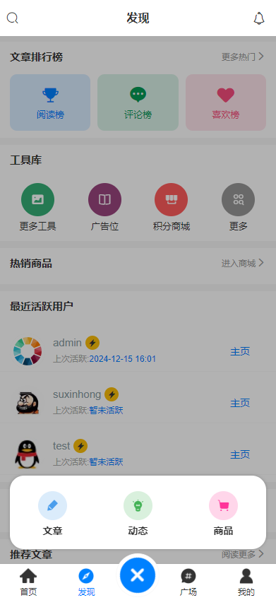 3.集成了在线评论,在线投稿,编辑文章,发布商品等内容操作模块