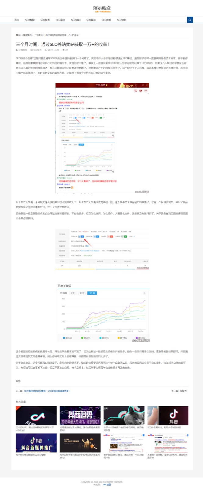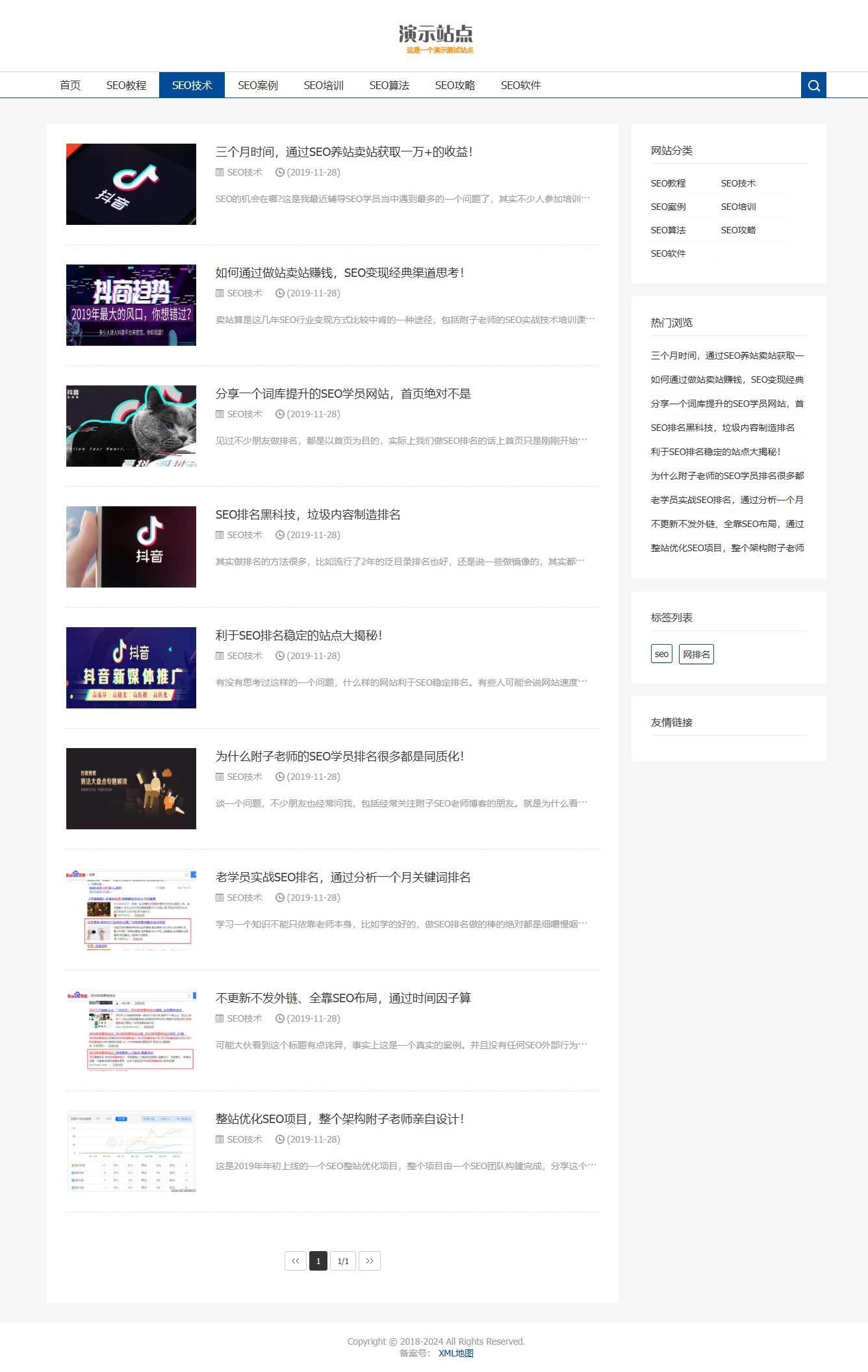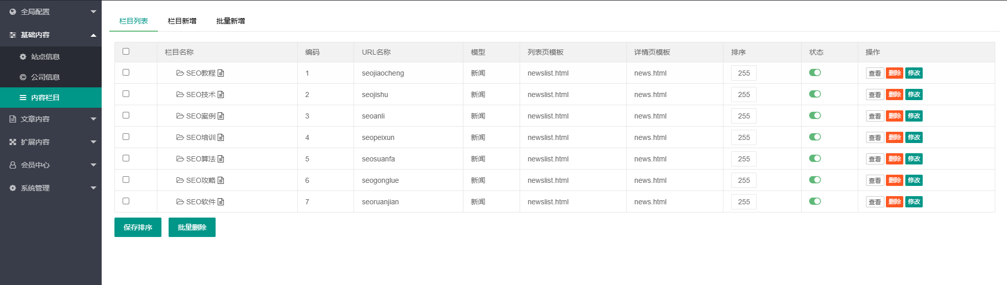 SEO框架布局,栏目及文章页均可独立设置标题/关键词/描述。