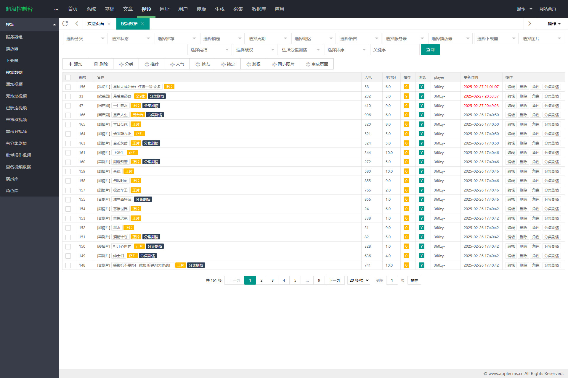 4.幻灯片设置方法,打开后台 视频>视频数据,找到想要设置幻灯片的视频,编辑,推荐选择第9级别,下面设置海报图即可。