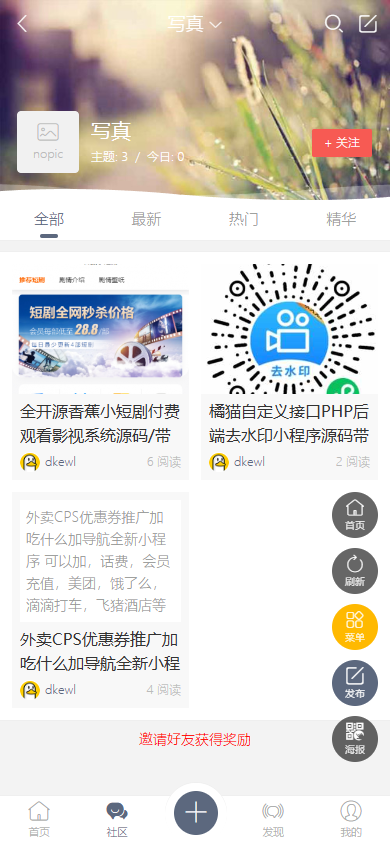 新版本博客自媒体论坛源码可切换皮肤精美UI设计带付费下载功能源码TP框...¥60.00
