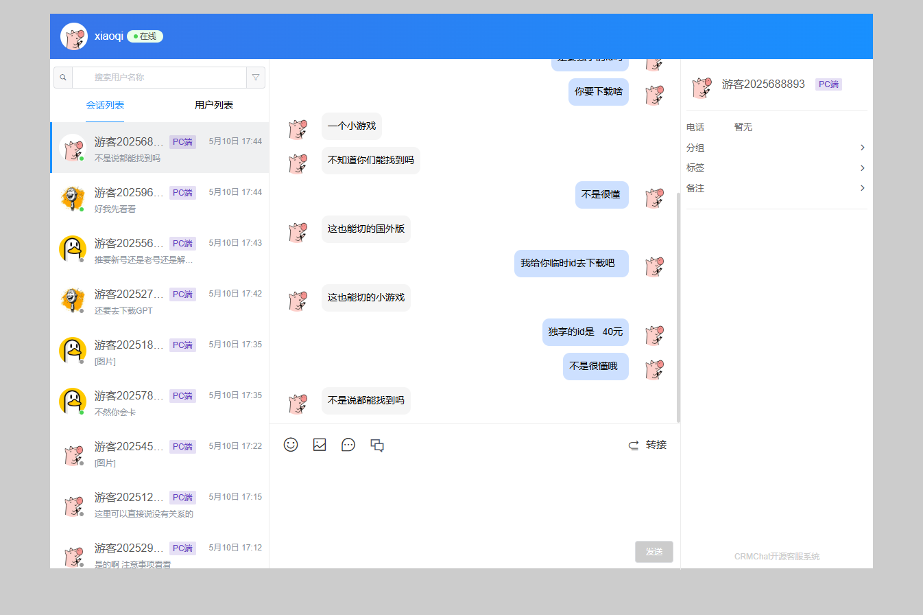 用户测试地址:https://www.haiwai.lol/chat/index?noCanClose=1&token=1c6550f162ca7861968270316a3e4a78&kefu_id=10