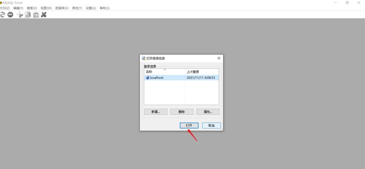 在成功安装SQL_Front后,点击旁边的'管理'按钮,选择打开本地localhost数据库。