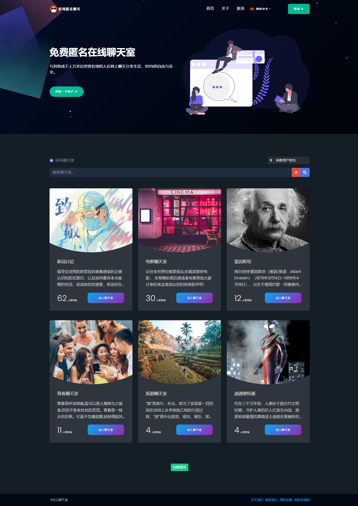 无限聊天室,你可以在创建无限的聊天室,还可以允许用户创建和管理自己的聊天室。