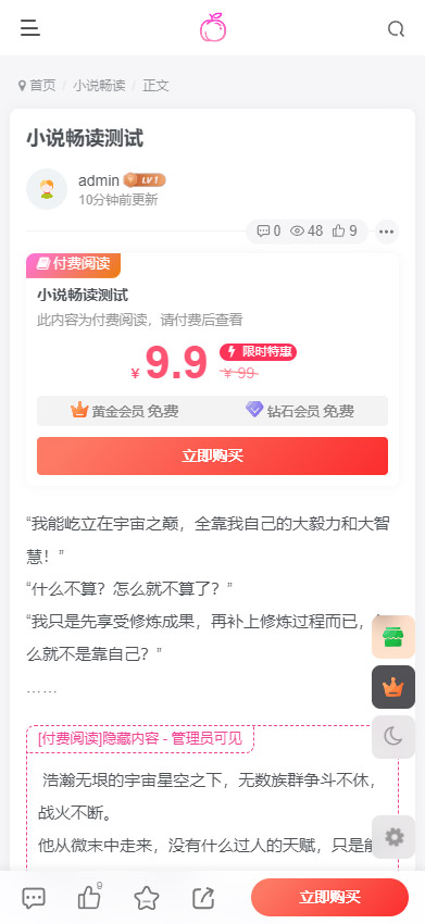 系统带打赏付费功能,个人中心支持自定义图片和链接